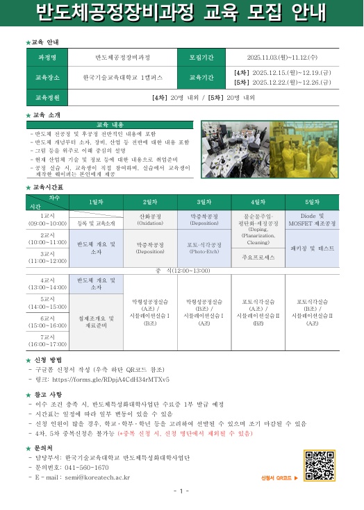 - 2025년 반도체공정장비과정 교육생 모집 안내